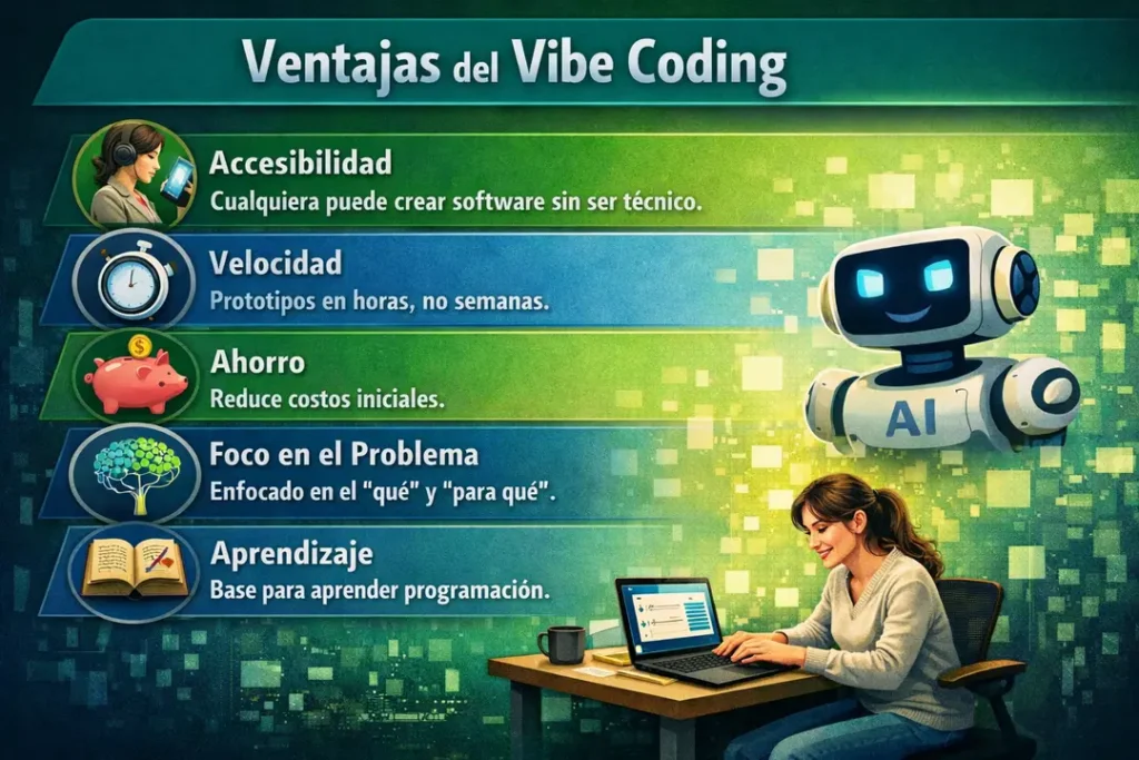 El vibe coding representa un cambio real en quién puede crear software y cómo, la barrera entre tener una idea y convertirla en una herramienta funcional nunca había sido tan baja, y eso abre oportunidades concretas para personas y organizaciones que antes dependían completamente de equipos técnicos.