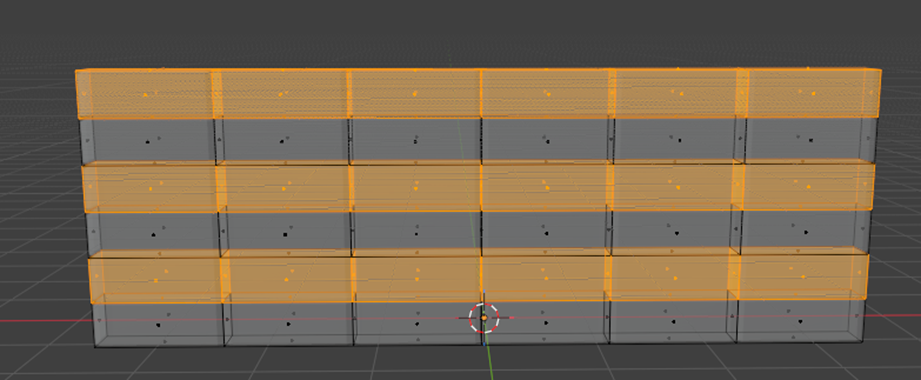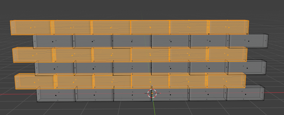 Una vez finalizada la selección de los ladrillos intercalados, presionamos la tecla G para moverlos y, a continuación, la tecla X para restringir el desplazamiento únicamente al eje X.