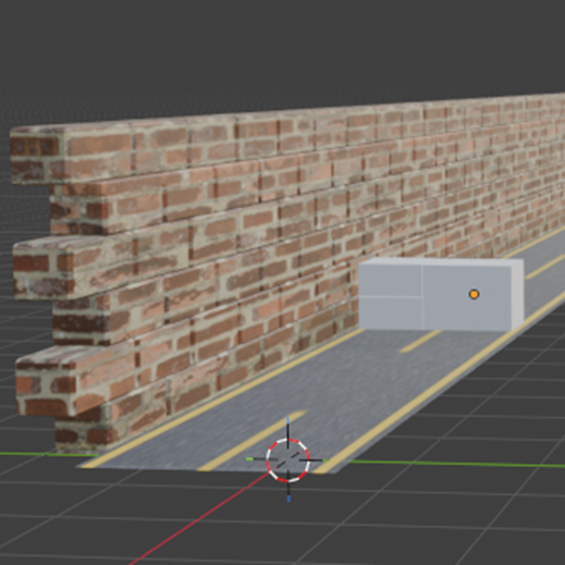 Posteriormente, acondicionaremos el plano ajustando su tamaño y proporciones para que coincida con la longitud del muro que realizamos anteriormente. De esta forma, logramos que el asfalto se integre correctamente al entorno y mantenga coherencia con la estructura del escenario.