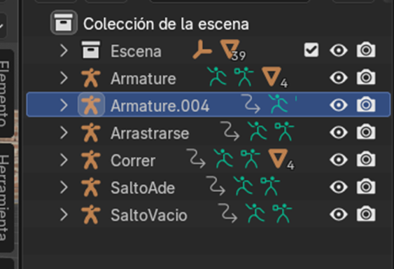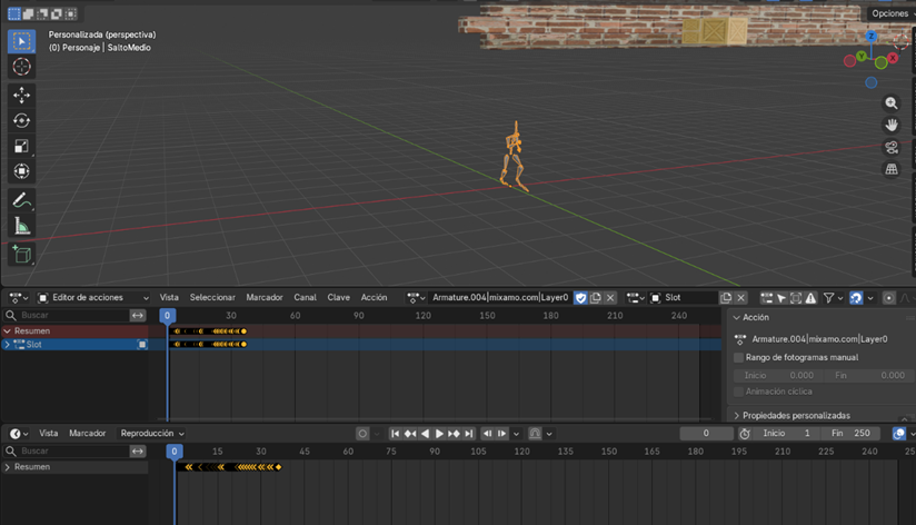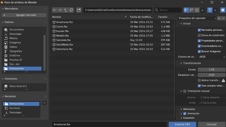 Después de haber descargado todas las animaciones necesarias, procedemos a importarlas en Blender, este paso nos permitirá organizar y combinar las diferentes animaciones