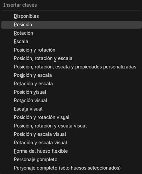 Una vez que la animación se encuentra en la nueva posición, hacemos clic derecho y seleccionamos la opción Insertar clave de posición. Este paso es fundamental, ya que permite guardar la ubicación correcta de inicio de la animación dentro de la línea de tiempo, asegurando que el movimiento del personaje se mantenga alineado y continúe de manera fluida con la animación anterior.