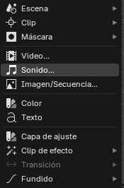 A continuación, hacemos clic en la opción Agregar y seleccionamos la opción Sonido. Esta acción nos redirigirá al explorador de archivos del sistema, donde podremos acceder a nuestra carpeta de audio y seleccionar la pista musical que hayamos elegido previamente para ambientar la animación. Una vez importado el sonido, este quedará ubicado en la línea de tiempo del Editor de Video para su posterior ajuste y sincronización.