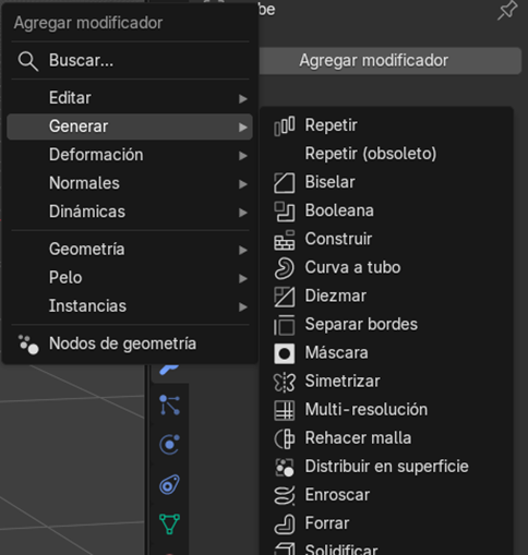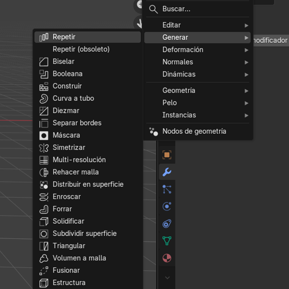 En este apartado agregamos un nuevo modificador, luego seleccionamos la opción Repetir.