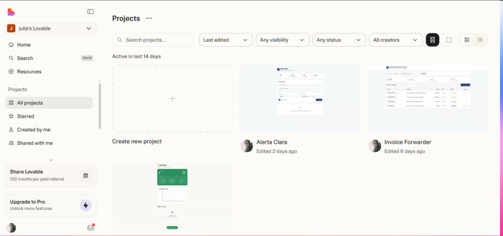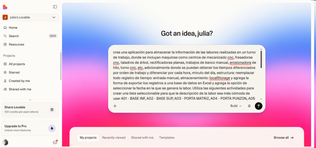 Entrar a la plataforma e ingresa a Lovable e inicia sesión.