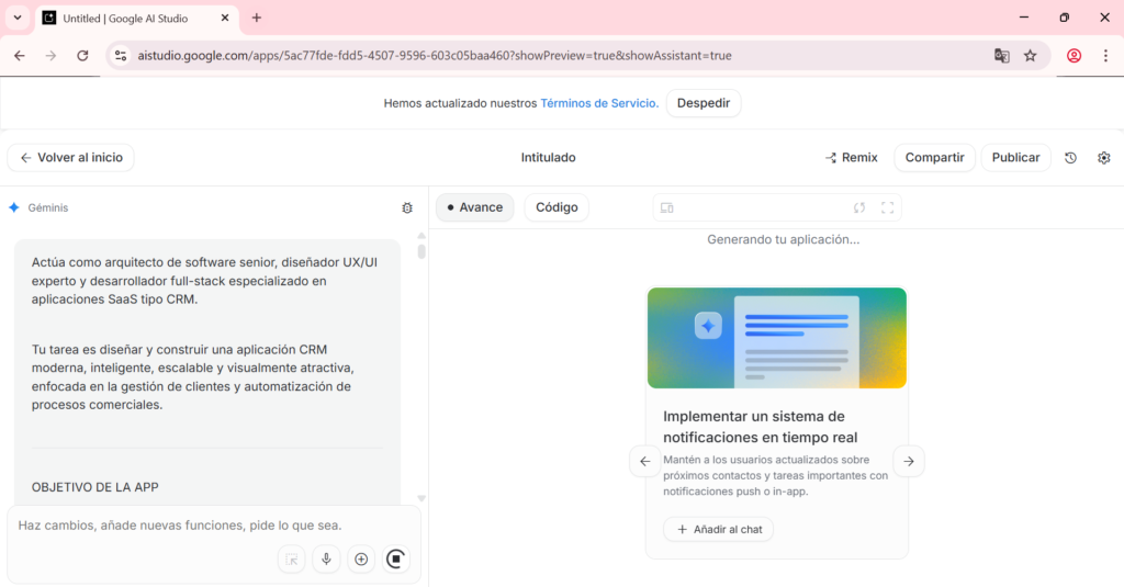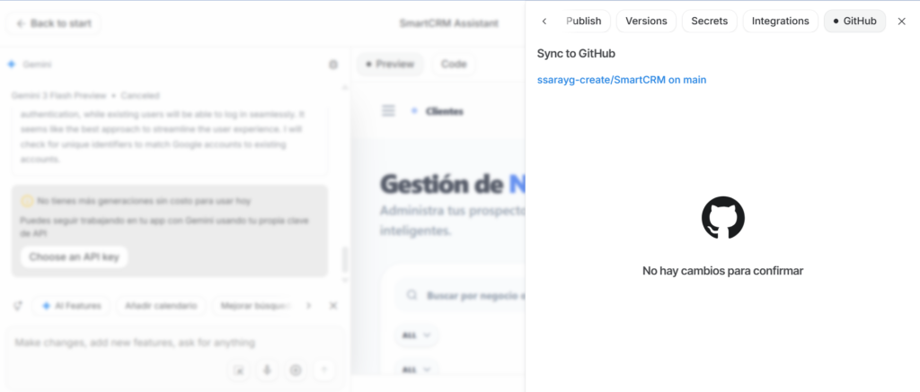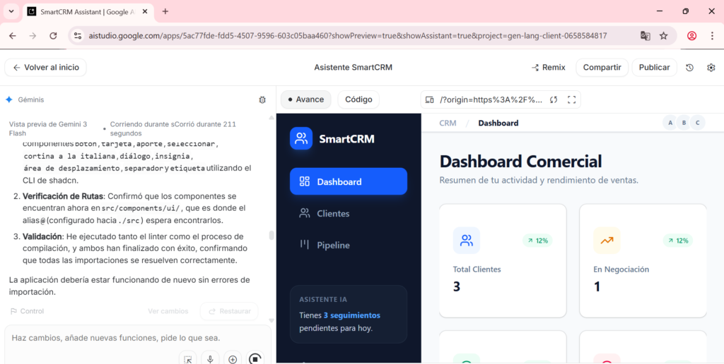 1. Abre el proyecto del CRM en Google AI Studio (Build Mode)