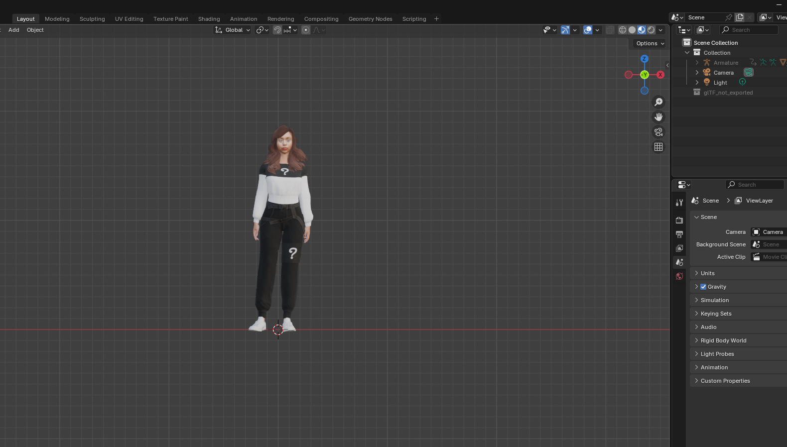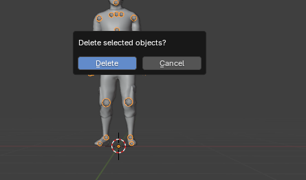Al importar el modelo, puede aparecer algún elemento adicional no deseado. Estos deben seleccionarse y eliminarse para dejar el personaje limpio en la escena.