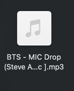 Visor de archivos — selección del archivo de audio de MIC Drop de BTS.