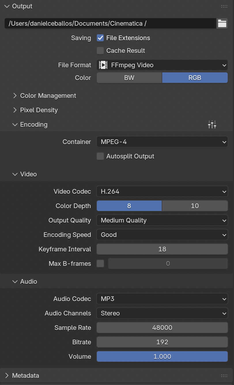 Para que el audio se exporte junto con el video en el render final, activa la casilla “Audio” dentro de las Propiedades de Salida antes de renderizar.