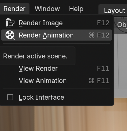 Se selecciona el motor de render EEVEE para obtener tiempos razonables manteniendo buena calidad visual. Para exportar la animación como video, se accede a Propiedades de Salida, se selecciona el formato FFmpeg Video y se elige el codec H.264.