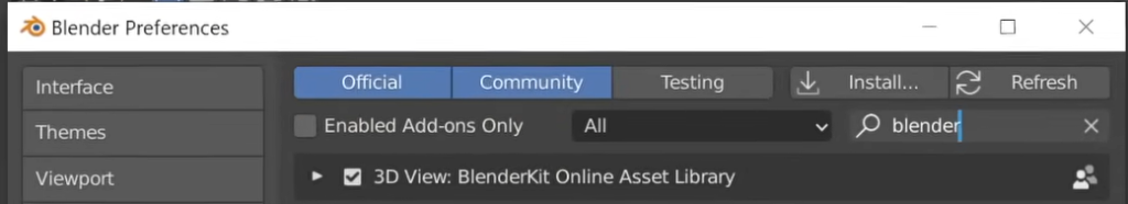Vamos a descargar el Blenderkit y nos aseguraremos de tenerlo importado