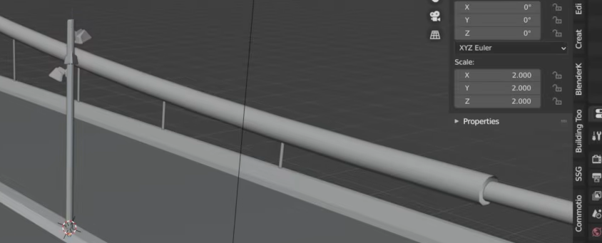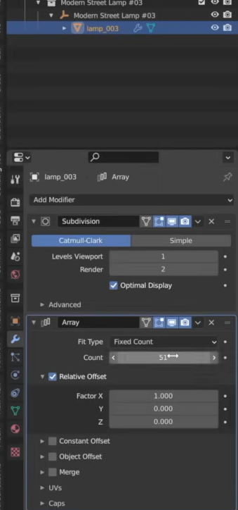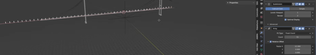 Ahora seleccionamos el objeto de la lampara para poder copiar y crear 51 objetos iguales los cuales los vamos a colocar en lo largo del puente