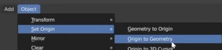 Ahora seleccionado el rin vamos a objeto set origen y de ahí origen to geometry