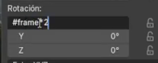 Seleccionando el rin vamos a modificar la rotación en X vamos a poner el #frame*2