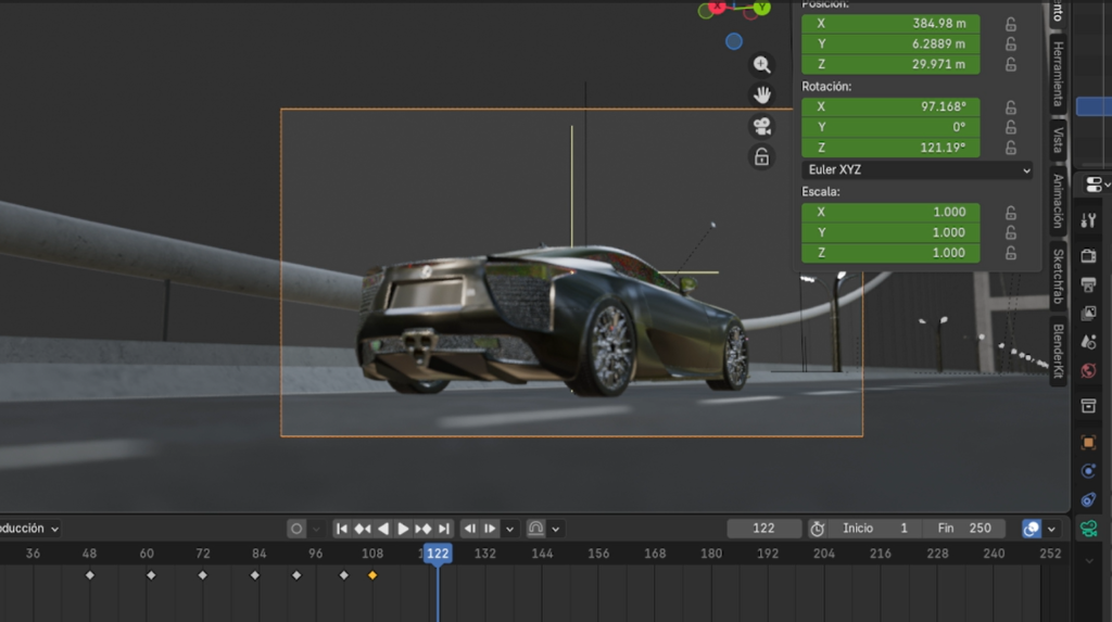Ya teniendo las luces vamos a usar los fotogramas para los movimiento del carro y de las cámaras