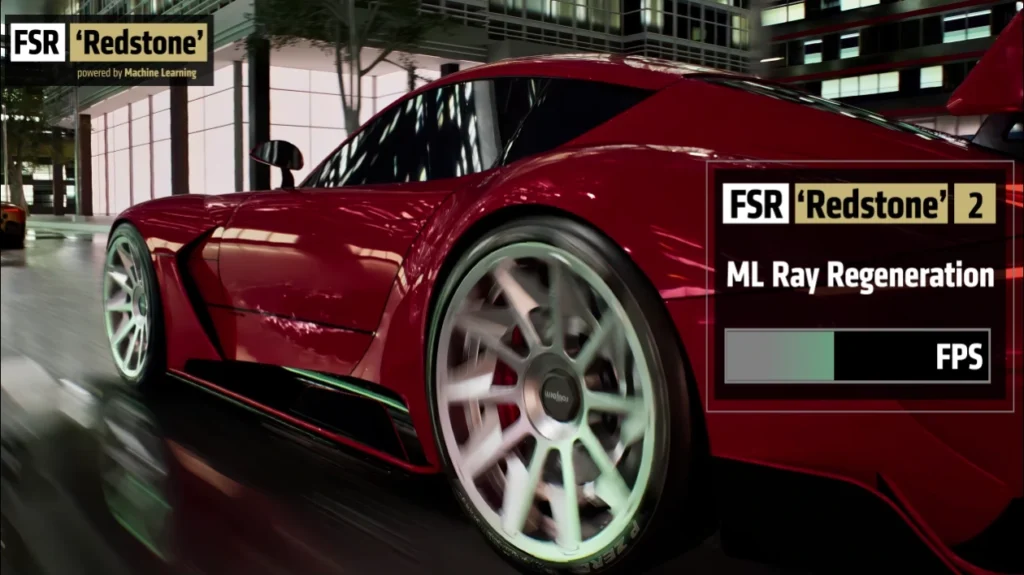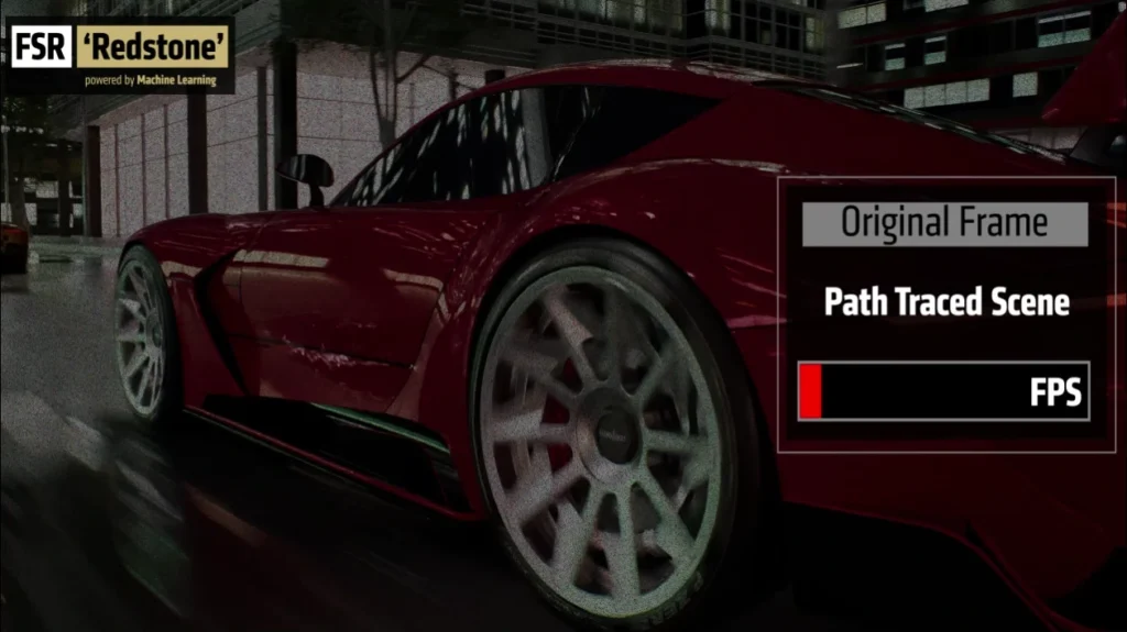 Nota. “Regeneración de rayos ML: infiere y restaura detalles trazados por rayos de calidad completa a partir de muestras dispersas, lo que brinda imágenes nítidas y sin ruido con un costo de renderizado reducido.” (Adaptado de AMD FidelityFX Super Resolution (FSR), s.f.). Recuperado de https://www.amd.com/en/products/graphics/technologies/fidelityfx/super-resolution.html